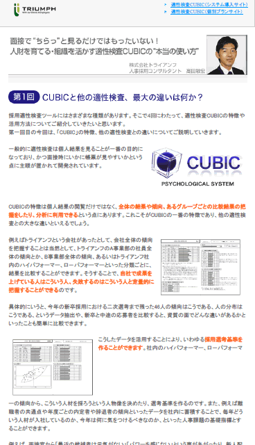 採用適性検査CUBIC TRIUMPH ver.製品紹介サイト 採用コストの削減とパフォーマンスアップを実現します。